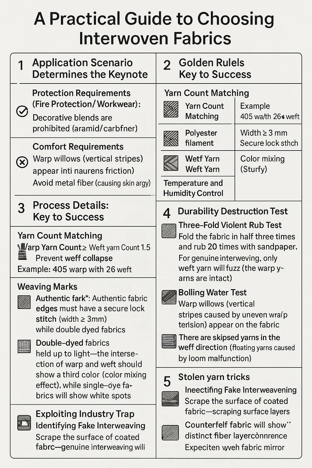 Identifikácia falošného prepletenia: Zoškrabte povrch potiahnutej látky – pri skutočnom prepletení sa po zoškrabaní objavia zreteľné vrstvy vlákien, zatiaľ čo na falošných látkach sa ukáže základná látka.