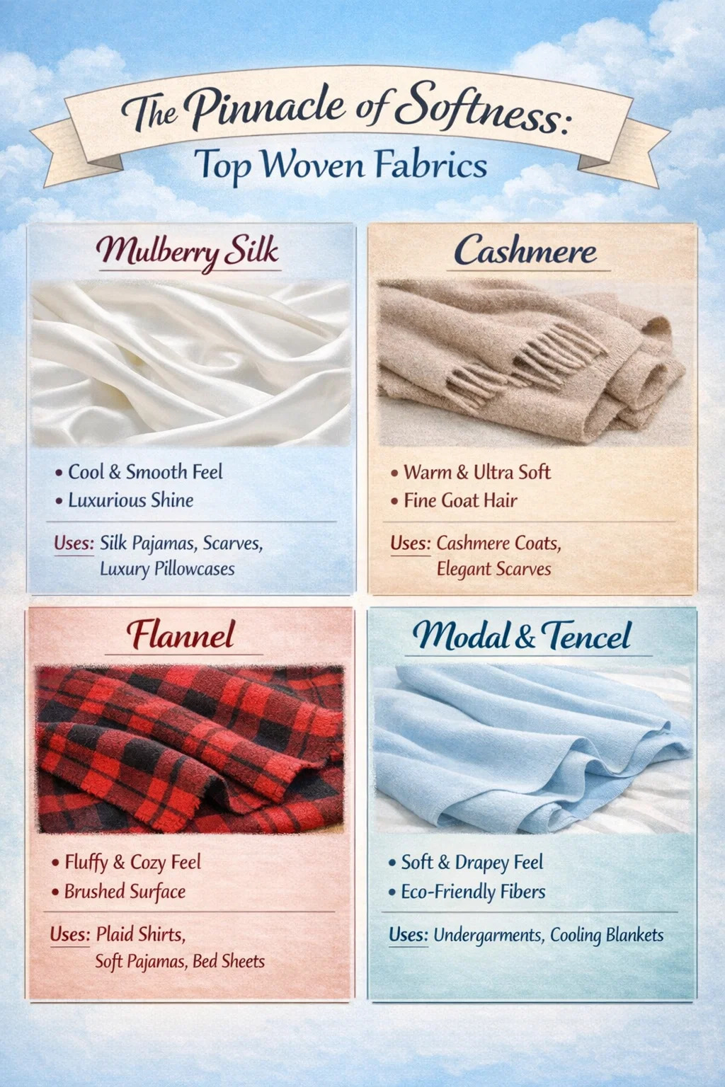 Pokiaľ ide o „najjemnejšie“ tkané látky , naozaj záleží na druhu pocitu, ktorý hľadáte – či už je to nadýchanosť podobná obláčiku alebo hodvábna hladkosť.
